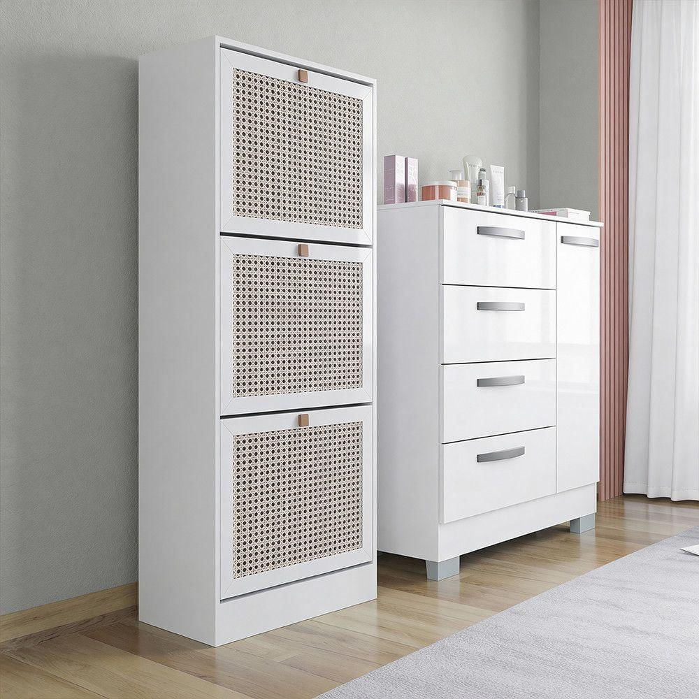 Kit Cômoda Elena E Sapateira 3 Portas Branca Poquema Branco