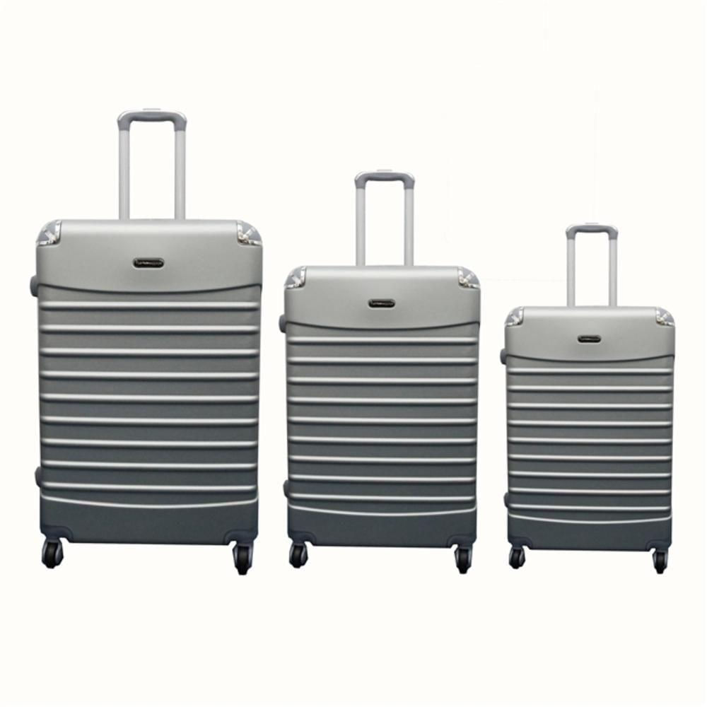 Kit Conjunto Mala De Viagem Fibra Rigida Abs P, M E G Com Cadeado E Rodinhas Giro 360 Travel Love Cinza