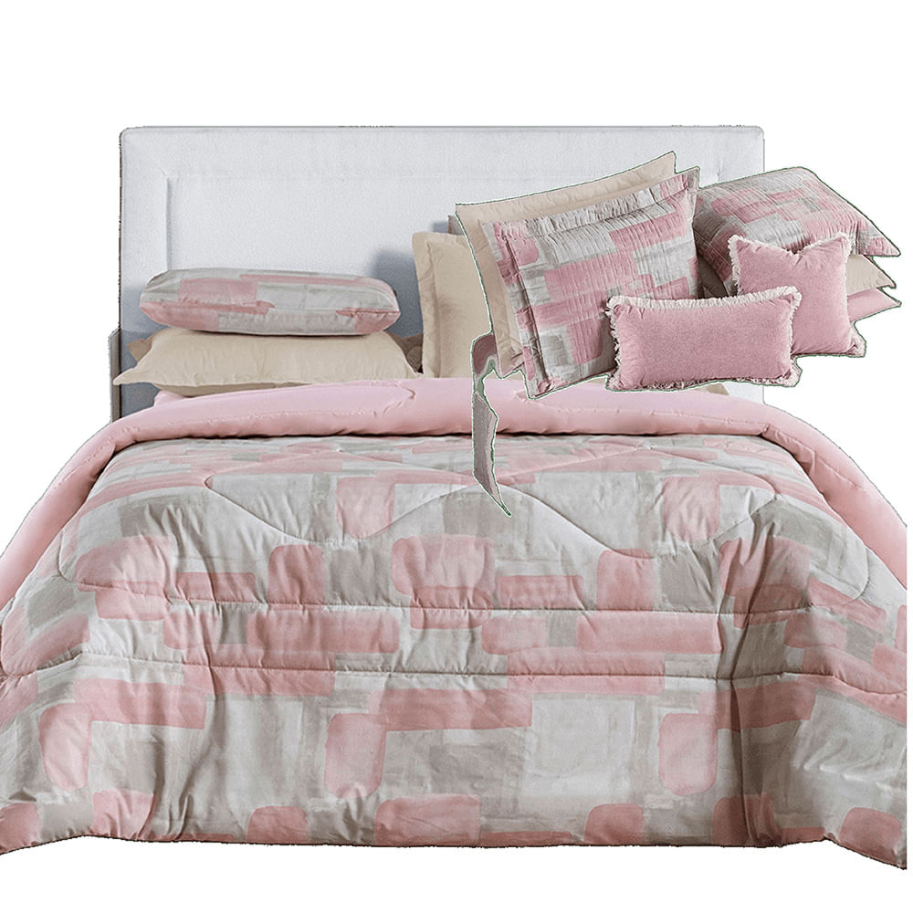Kit Coordenado Edredom e Cobre Leito Sensuale Super King Quadri 4 Peças - 80% Algodão, 20% Poliéster