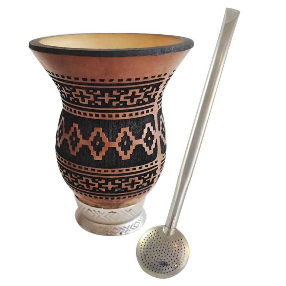 O kit com a cuia de porongo natural com pé e bomba inox lisa de 21cm é ideal para apreciar chimarrão ou tererê com estilo e tradição. A cuia, feita de porongo 100% natural com pé em alumínio, possui o bocal queimado para evitar que as impurezas penetrem no porongo, além de detalhes entalhados a laser em relevo com estampa de flores e arabescos. A bomba em inox lisa garante durabilidade, higiene e fácil limpeza, proporcionando um fluxo suave da bebida. Um conjunto perfeito para uso diário ou encontros com amigos, unindo praticidade e cultura em cada momento.