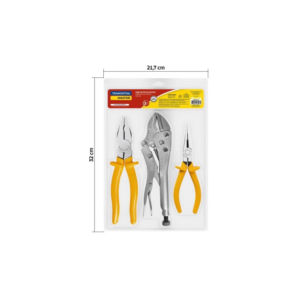 Kit de Ferramentas Tramontina com Alicate de Pressão 10 polegada Alicate Universal 8" e Alicate Bico Meia Cana 6"