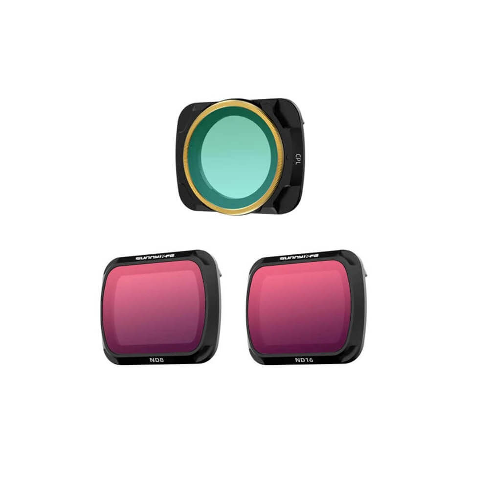 Neste combo você adquire 3 filtros da marca Sunnylife para o drone DJI Mavic Air 2: um filtro CPL (polarizador), uma ótima escolha se você deseja aprimorar as imagens capturadas com seu Drone, especialmente em ambientes abertos e ao ar livre, pois é utilizado para eliminar a luz refletida em superfícies não metálicas e aumentar a concentração de cor. Também aprimora a cor azul do céu, destaca as nuvens brancas, torna a imagem mais completa e melhora a clareza, criando uma foto mais expressiva e vívida; e dois filtros de densidade neutra (ND8 e ND16), que ajudam a gerenciar a exposição na lente da câmera, reduzindo a quantidade de luz que entra, sendo possível fotografar em condições de iluminação intensa e melhorar os resultados de imagem do seu Drone.