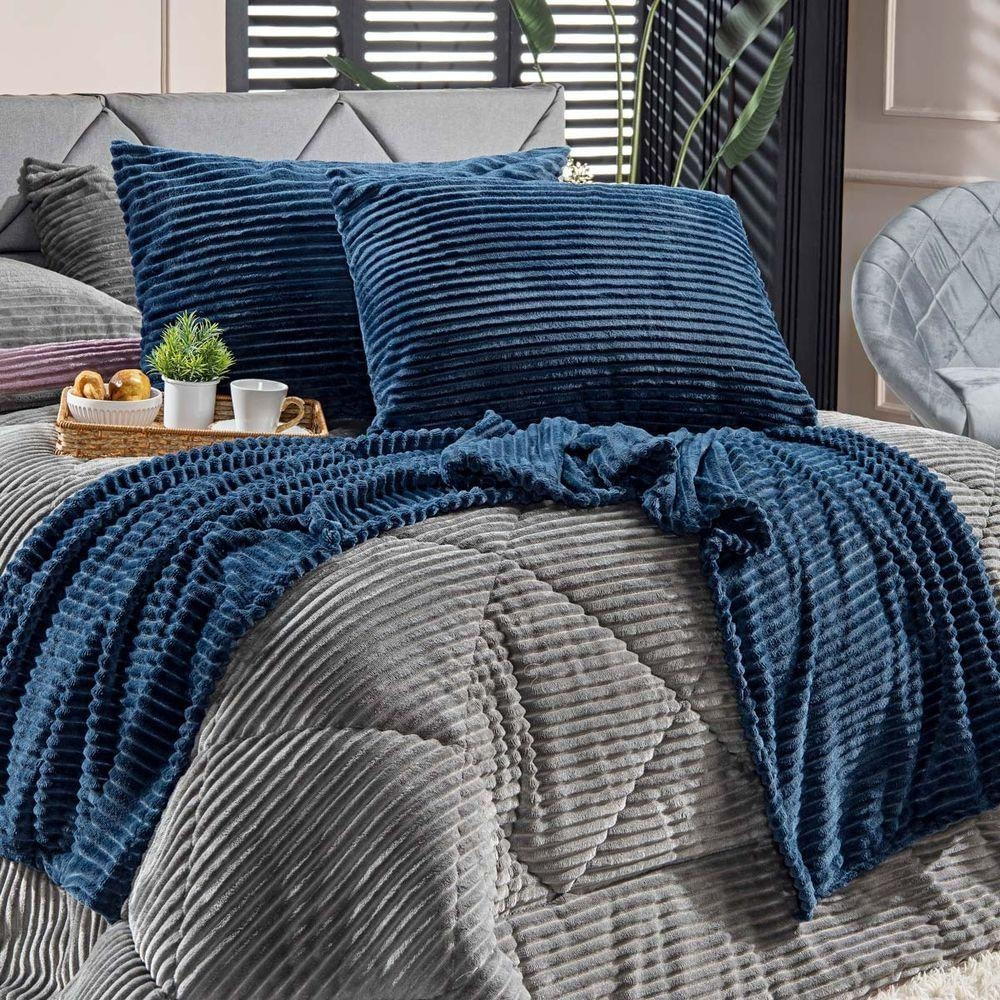 Kit De Peseira Canelada Denver C/ Fronhas 03 Peças - Tecido Canelado Mantinha Cor Azul Marinho