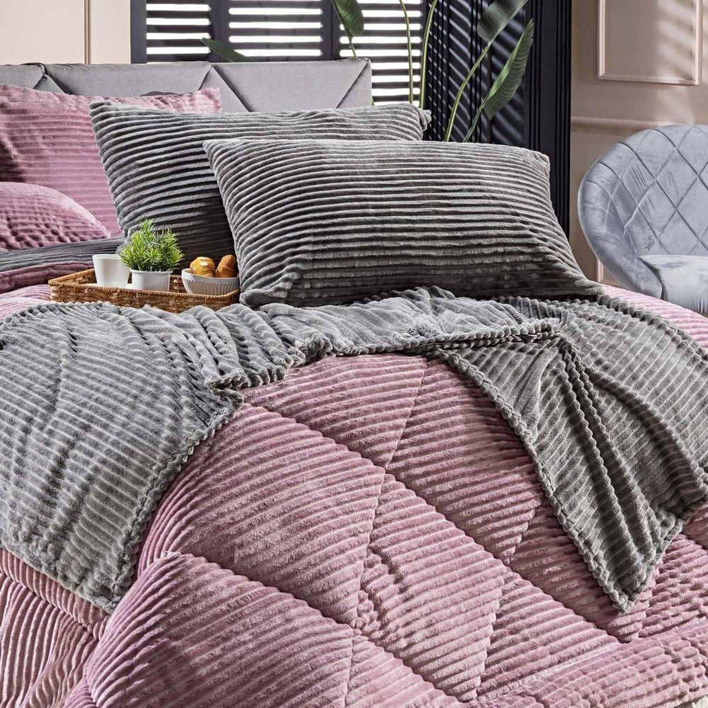 Kit De Peseira Canelada Denver C/ Fronhas 03 Peças - Tecido Canelado Mantinha Cor Cinza