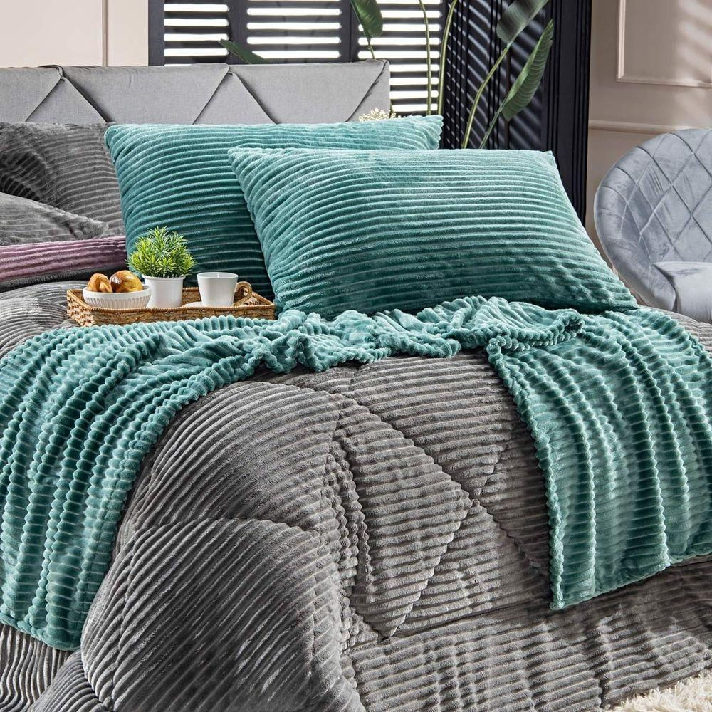 Kit De Peseira Canelada Denver C/ Fronhas 03 Peças - Tecido Canelado Mantinha Cor Verde