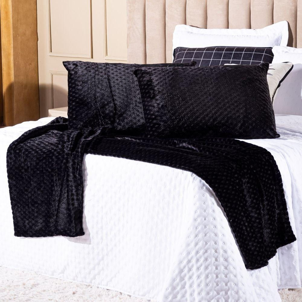 Kit De Peseira Para Cama Majestic Com Fronhas 03 Peças - Tecido Mantinha Flannel Em Toque De Seda Brilhante Cor Preto