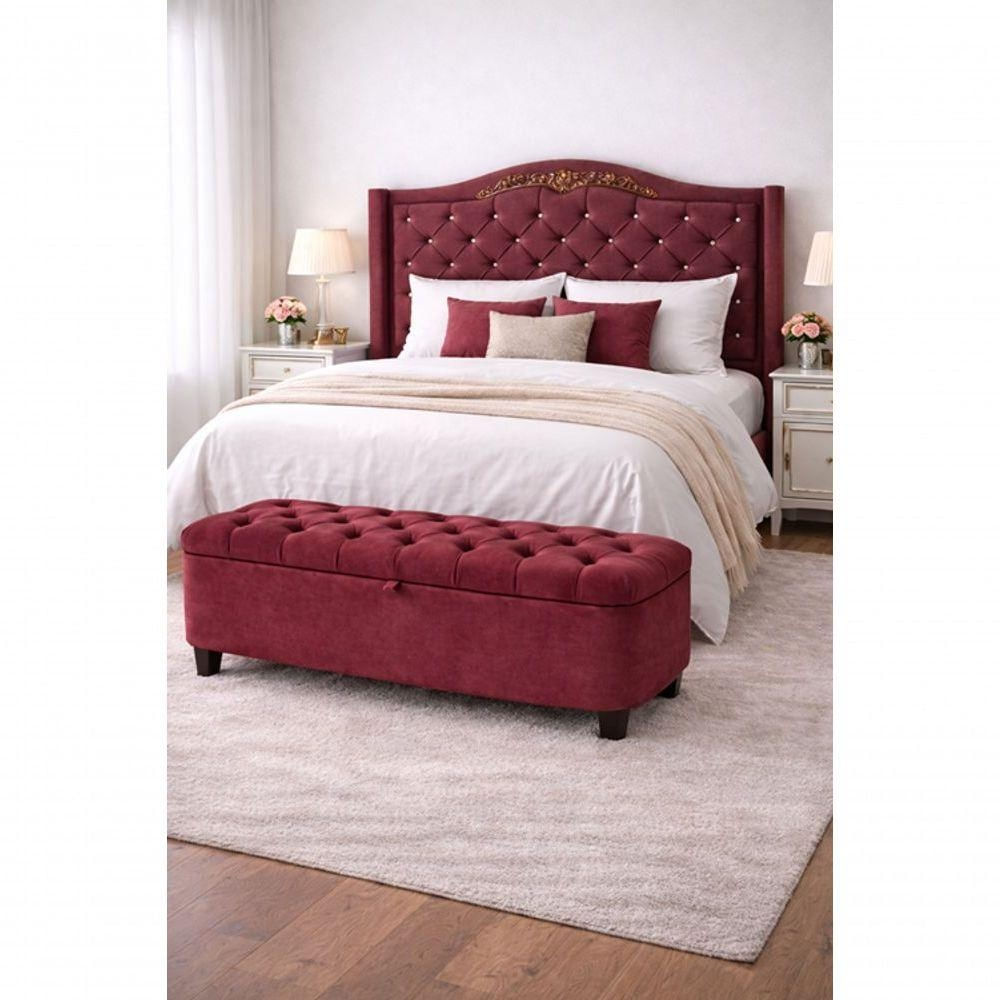 Kit De Quarto Lisboa Cabeceira De Cama Box E Calçadeira Baú Casal 140 Cm Suede Bordo Eli Móveis E Decoração