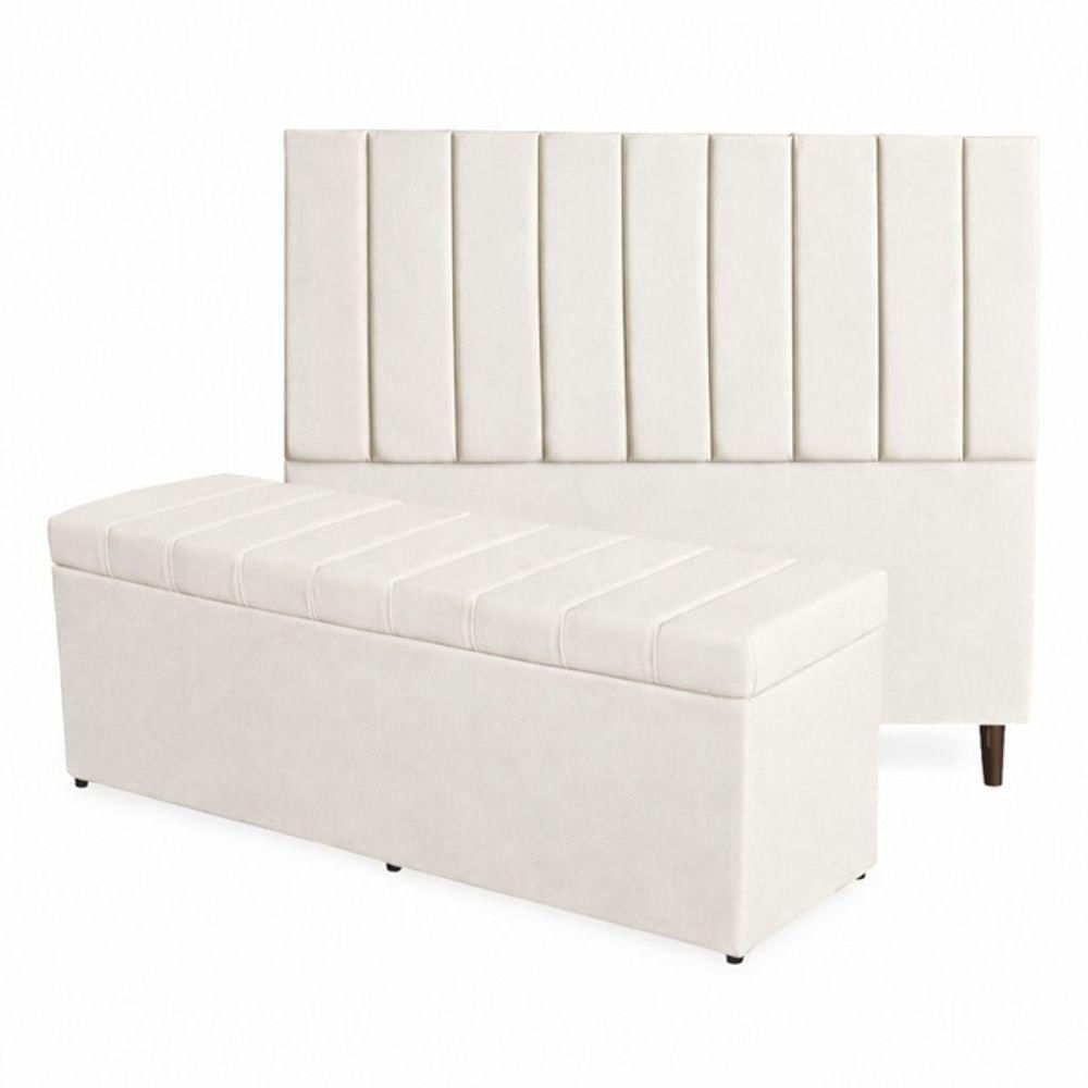 Kit De Quarto Roma Cabeceira De Cama Box E Calçadeira Baú Casal Queen 160 Cm Suede Off White Eli Móveis E Decoração