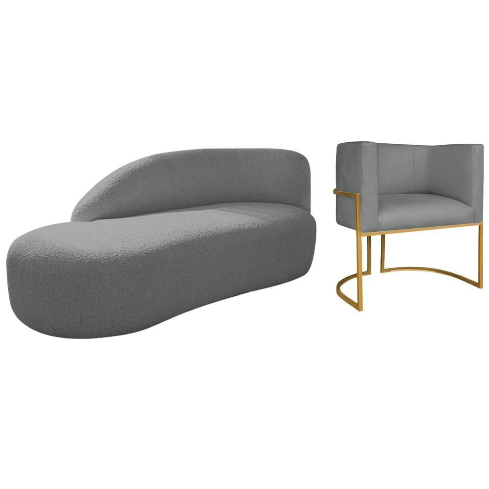 Kit Divã Luna 185cm Lado Esquerdo E 01 Poltrona Base De Ferro Dourado Suede Cor Cinza