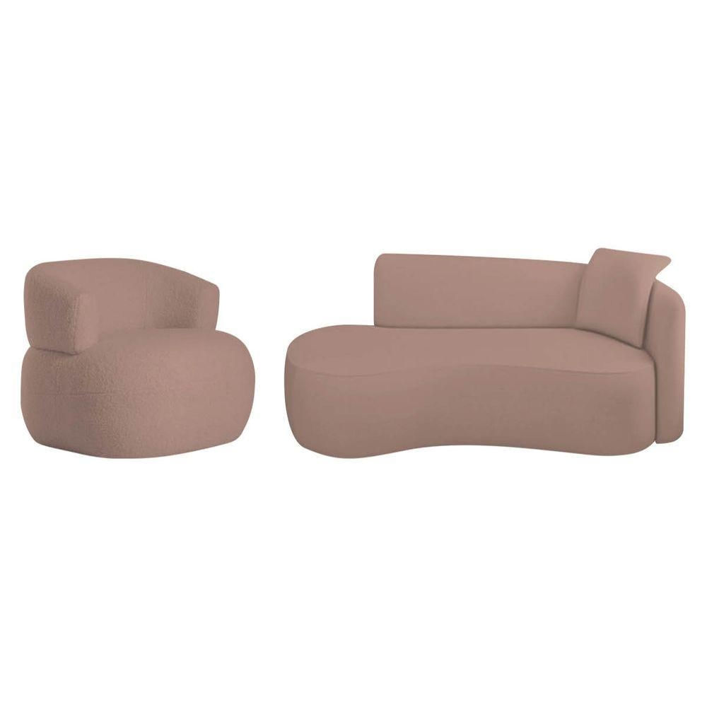 Kit Divã Recamier 180cm E Poltrona Luxo Suíça Lado Esquerdo Linho Rosê