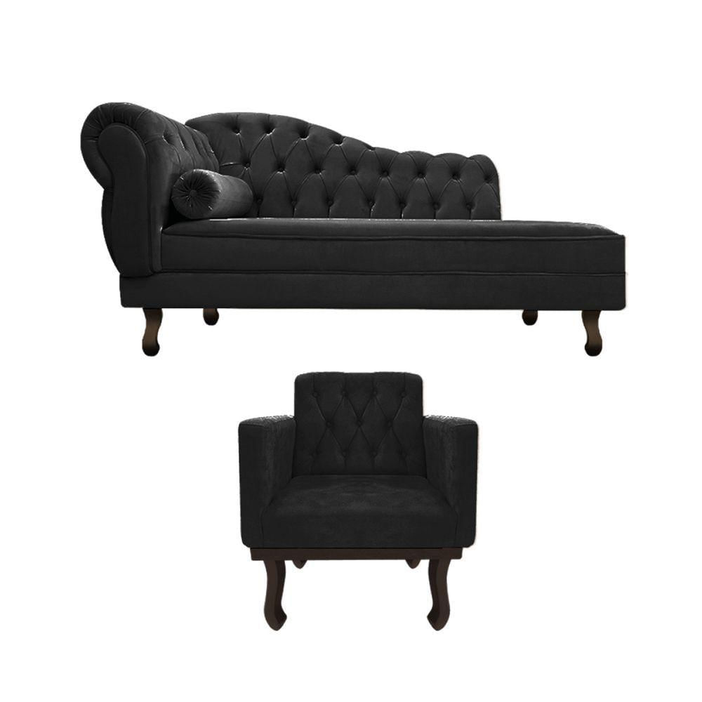 Kit Diva Recamier Diana 120cm Lado Direito E 1 Poltrona Classic Suede Adj Decor Preto
