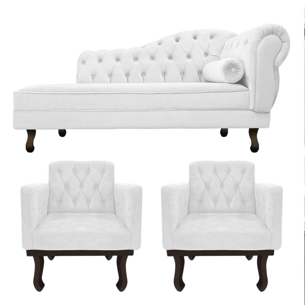 Kit Diva Recamier Diana 120cm Lado Esquerdo E 2 Poltronas Classic Corano Adj Decor Branco