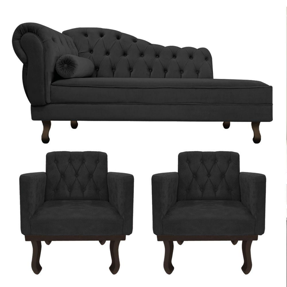 Kit Diva Recamier Diana 140cm Lado Direito E 02 Poltronas Classic Linho - Adj Decor Cor Cinza Escuro