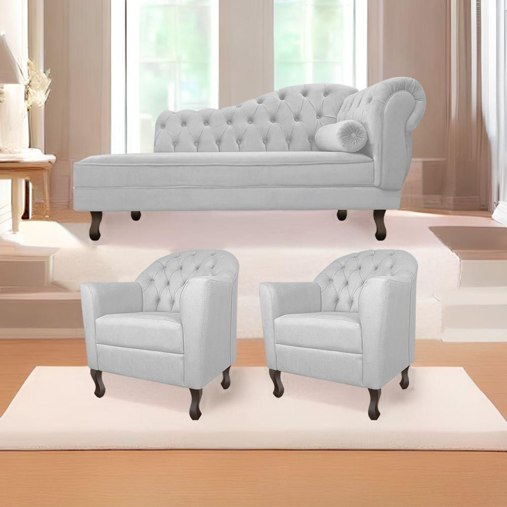 Kit Diva Recamier Diana 140cm Lado Esquerdo E 02 Poltronas Julia Corano - Doce Sonho Móveis Cor Branco