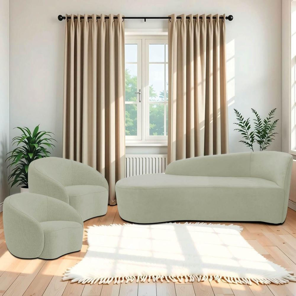 Kit Divã Recamier Orgânico França 140cm Lado Esquerdo E 2 Poltronas Amore Bouclé Verde Oliva