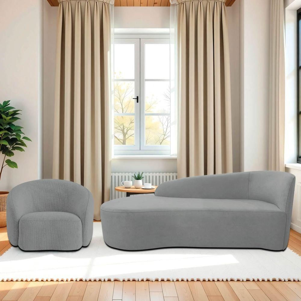 Kit Divã Recamier Orgânico França 140cm Lado Esquerdo E Poltrona Amore Bouclé Cinza