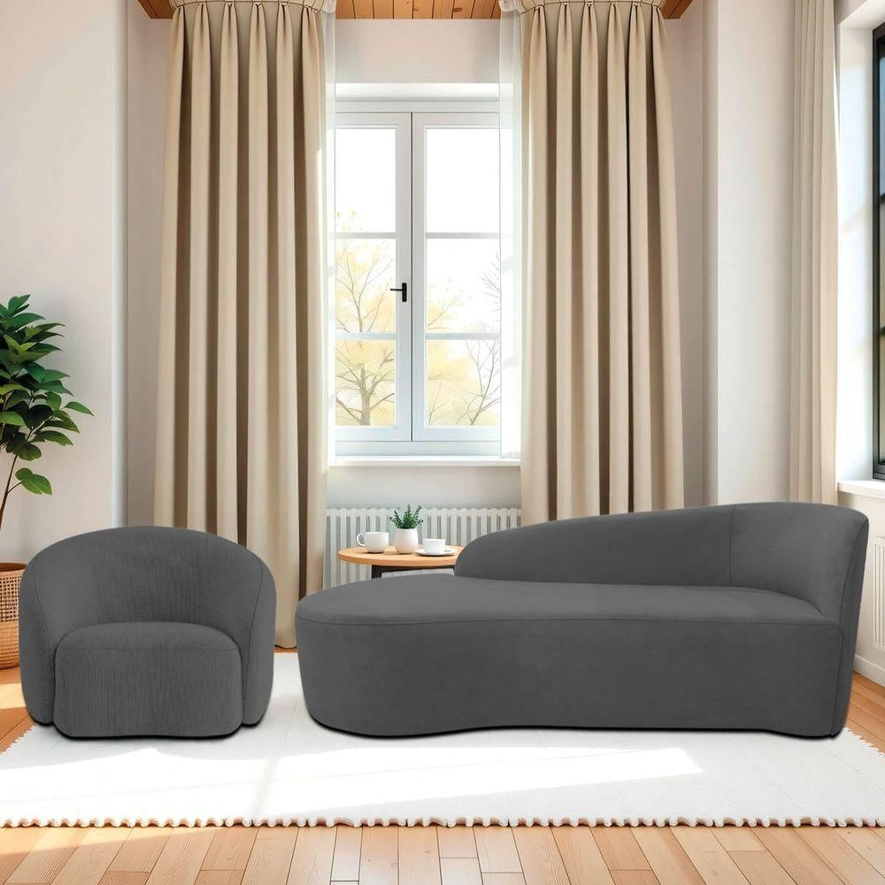 Kit Divã Recamier Orgânico França 160cm Lado Esquerdo E Poltrona Amore Linho Cinza Escuro