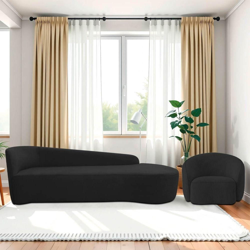 Kit Divã Recamier Orgânico França 220cm Lado Direito E Poltrona Amore Bouclé Preto