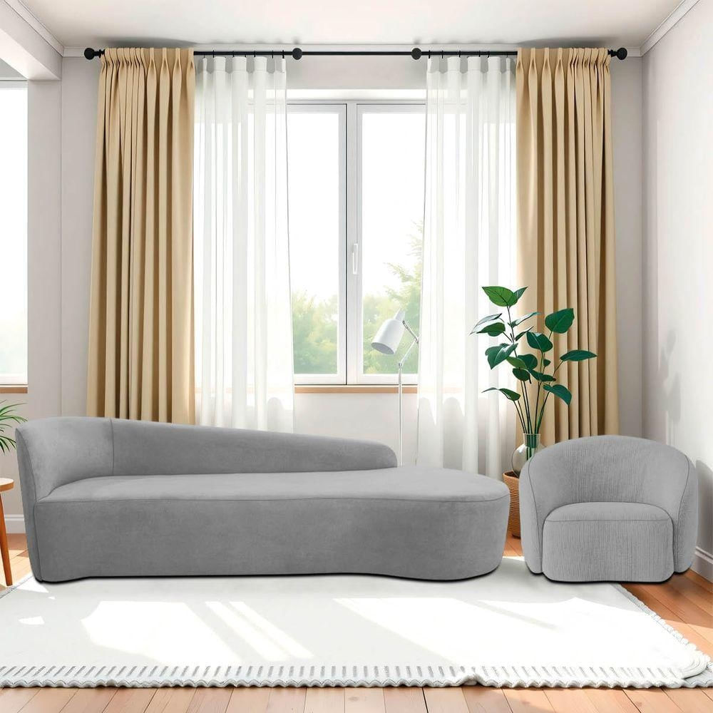 Kit Divã Recamier Orgânico França 220cm Lado Direito E Poltrona Amore Linho Cinza Claro