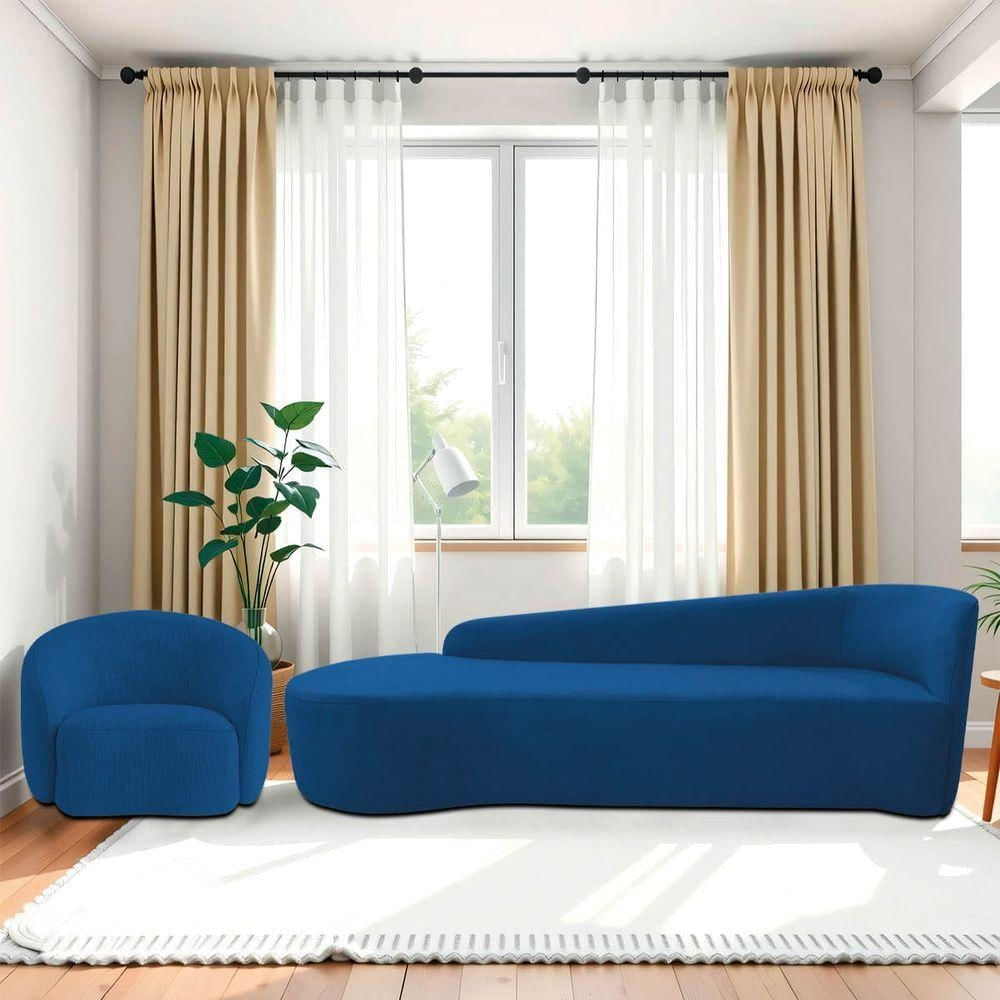 Kit Divã Recamier Orgânico França 250cm Lado Esquerdo E 2 Poltronas Amore Linho Azul Royal
