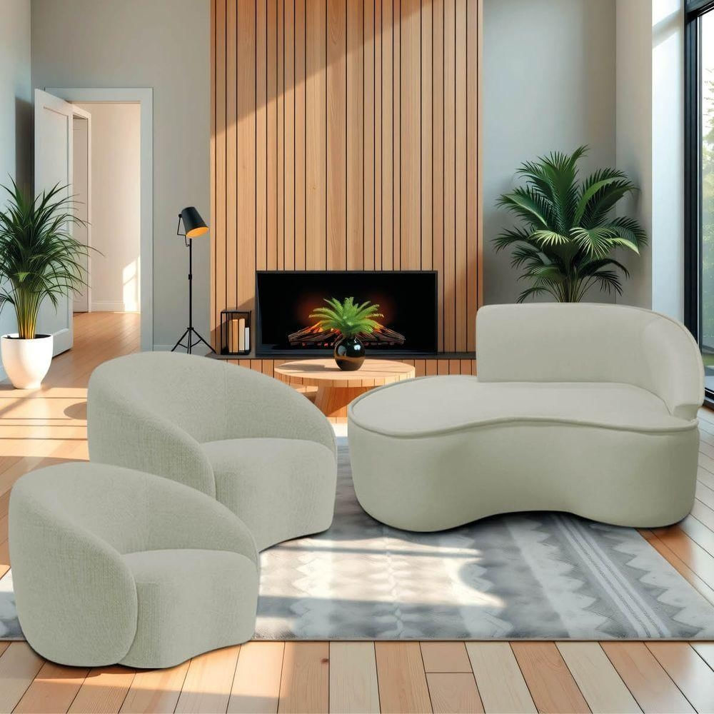 Kit Divã Recamier Orgânico Marrocos 150cm Lado Esquerdo E 2 Poltronas Amore Bouclé Verde Oliva
