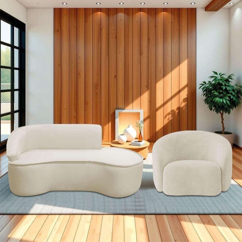 Kit Divã Recamier Orgânico Marrocos 160cm Lado Direito E 1 Poltronas Amore Bouclé Bege