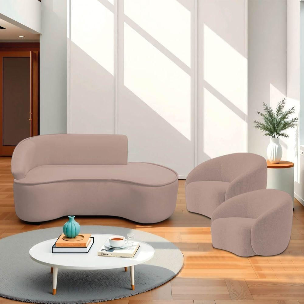 Kit Divã Recamier Orgânico Marrocos 180cm Lado Direito E 2 Poltronas Amore Linho Rosê