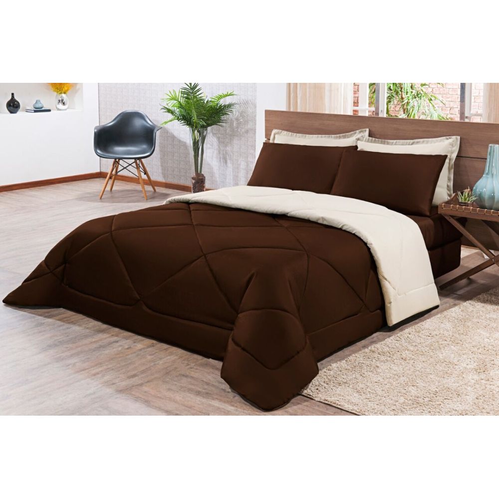 Kit Edredom + Jogo De Lençol Aconchego Look House Casal Padrão 6 Peças 80% Algodão , 20% Poliéster- Marrom E Palha