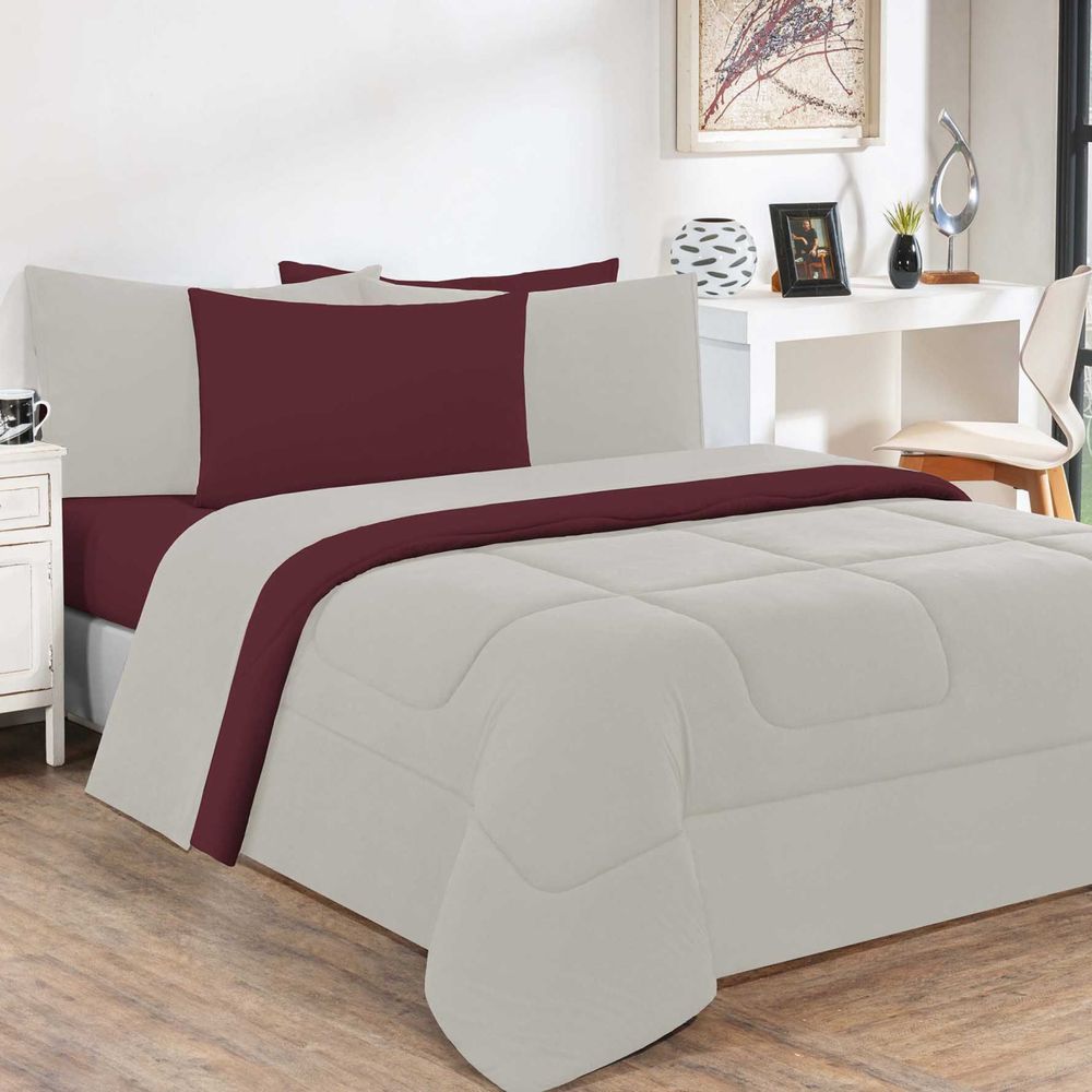 Kit Edredom + Jogo De Lençol Malha 100% Algodão Gran Moratta 6 Peças King - Palha /Vinho