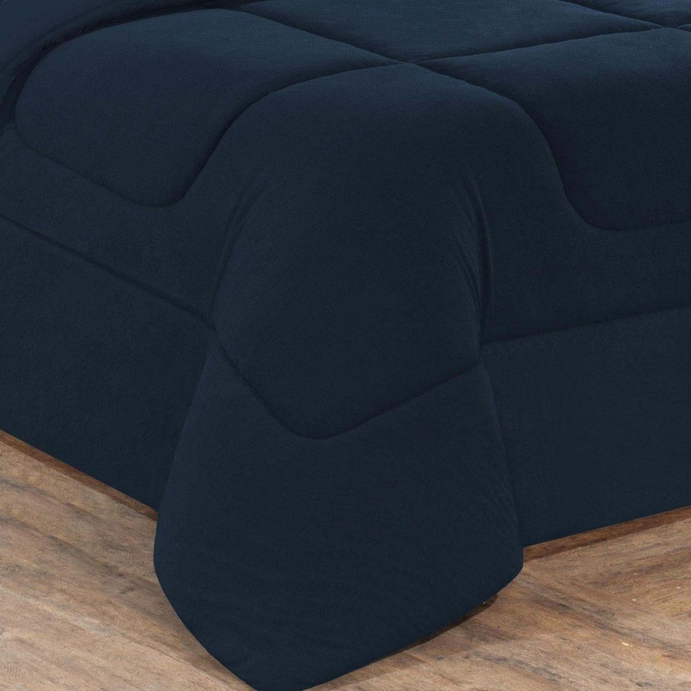 Kit Edredom + Jogo De Lençol Malha 100% Algodão Gran Moratta 7 Peças Queen - Azul Marinho/Azul Marinho