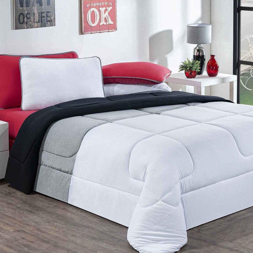 Kit Edredom + Jogo De Lençol Malha 100% Algodão Urbano 6 Peças Queen - Branco/Mescla/Vermelho