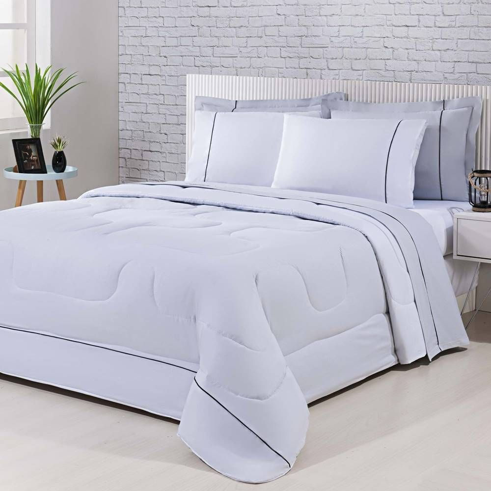 Kit Edredom 100% Algodão Percal 150 Fios Dupla Face King + Jogo De Cama Gran Moratta 7 Peças - Branco/ Cinza