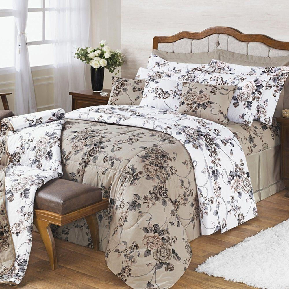 Kit Edredom Desire Casal Queen 5 Peças Percal 200 Fios 100% Algodão - Estampa Samara