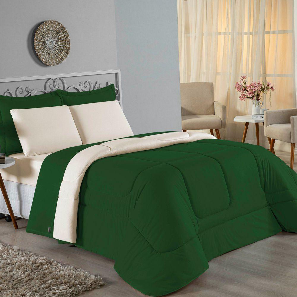 Kit Edredom Dupla Face + Jogo De Lençol Casal Nobre 6 Peças 100% Algodão Verdebandeira / Palha