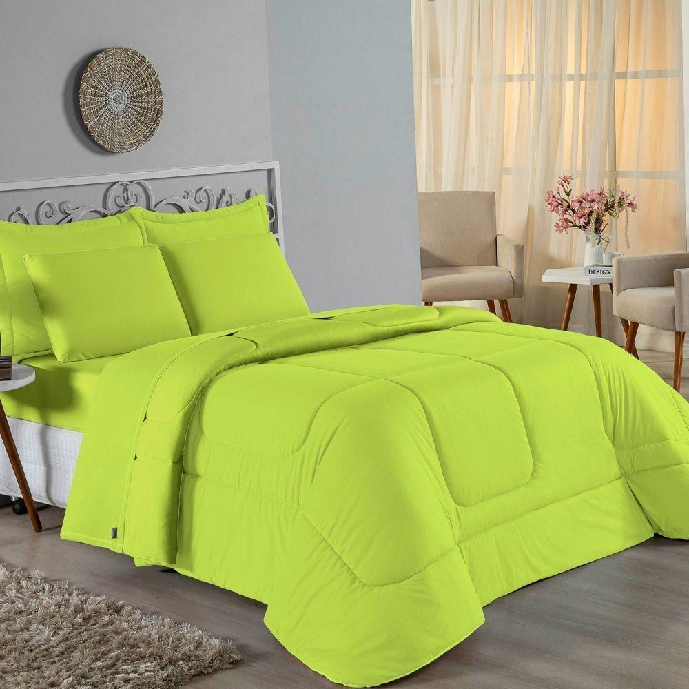 Kit Edredom Dupla Face + Jogo De Lençol Casal Nobre 7 Peças Malha 100% Algodão - Pistache