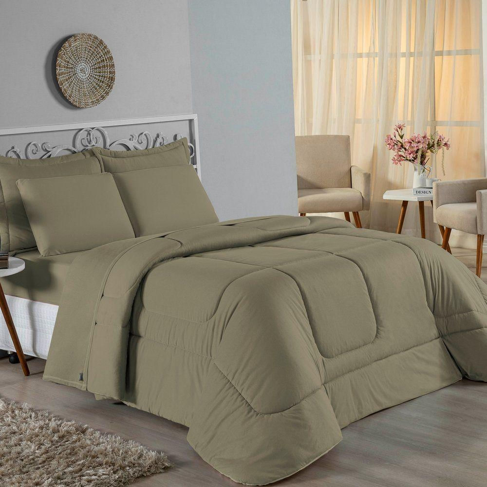Kit Edredom Dupla Face + Jogo De Lençol Casal Viúva Nobre 6 Peças Malha 100% Algodão - Avelã