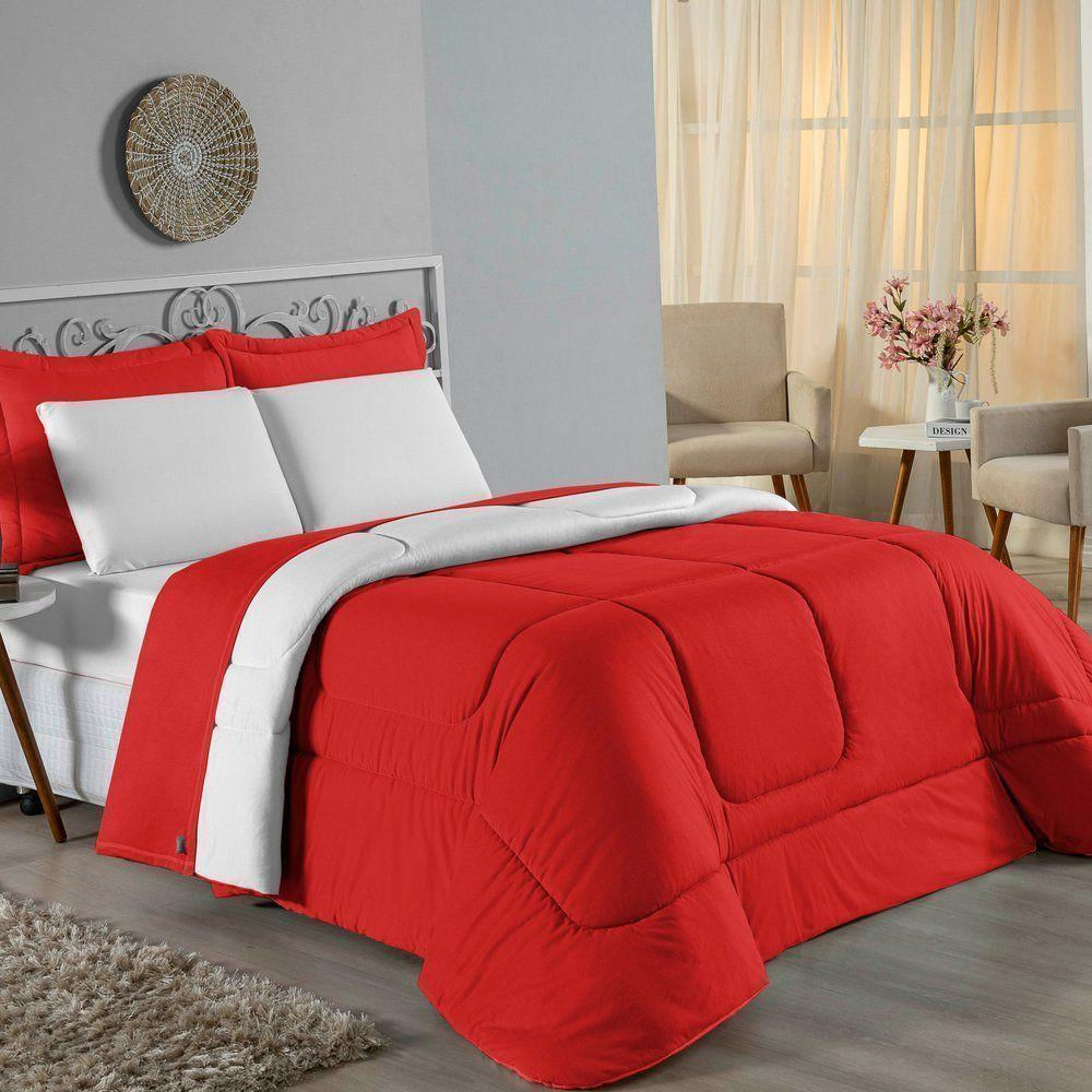 Kit Edredom Dupla Face + Jogo De Lençol Casal Viúva Nobre 7 Peças Malha 100% Algodão - Vermelho / Branco