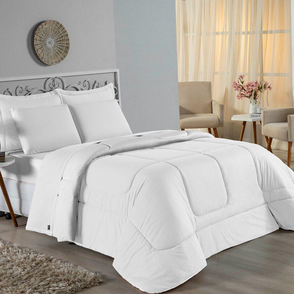 Kit Edredom Dupla Face + Jogo De Lençol King Nobre 6 Peças Malha 100% Algodão - Branco