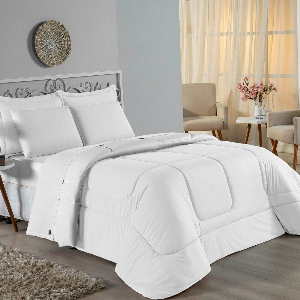 Kit Edredom Dupla Face + Jogo De Lençol Queen Nobre 7 Peças Malha 100% Algodão - Branco