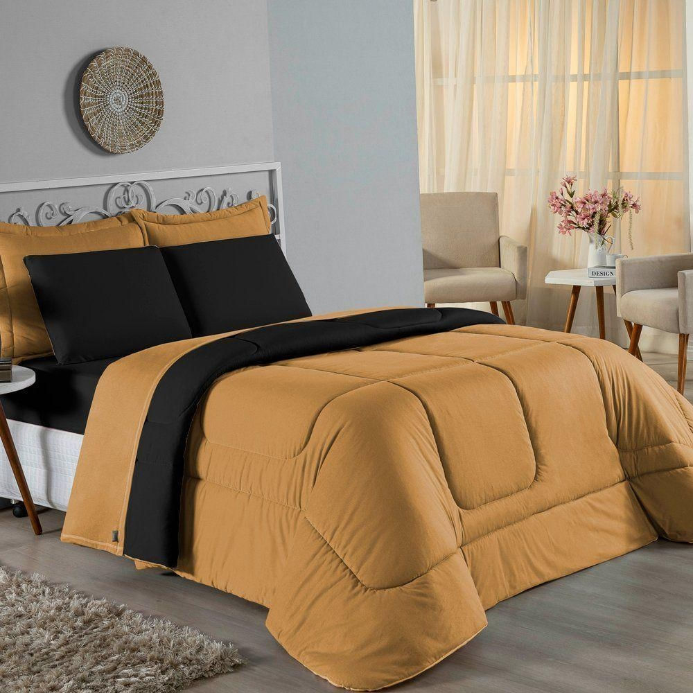 Kit Edredom Dupla Face + Jogo De Lençol Solteiro Nobre 4 Peças Malha 100% Algodão - Cobre / Preto