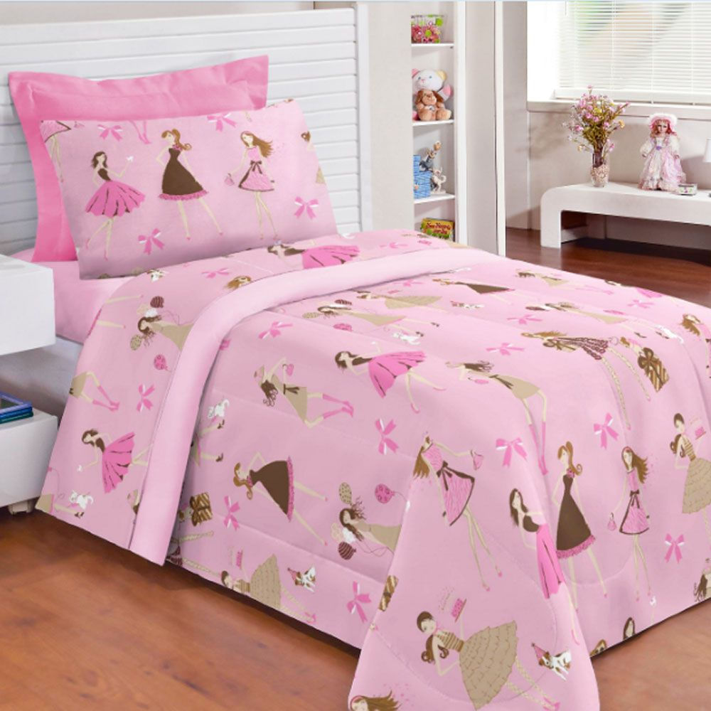 Kit Edredom Infantil Sofie Marrie e Fifi + Jogo De Lençol 5 Peças - Rosa