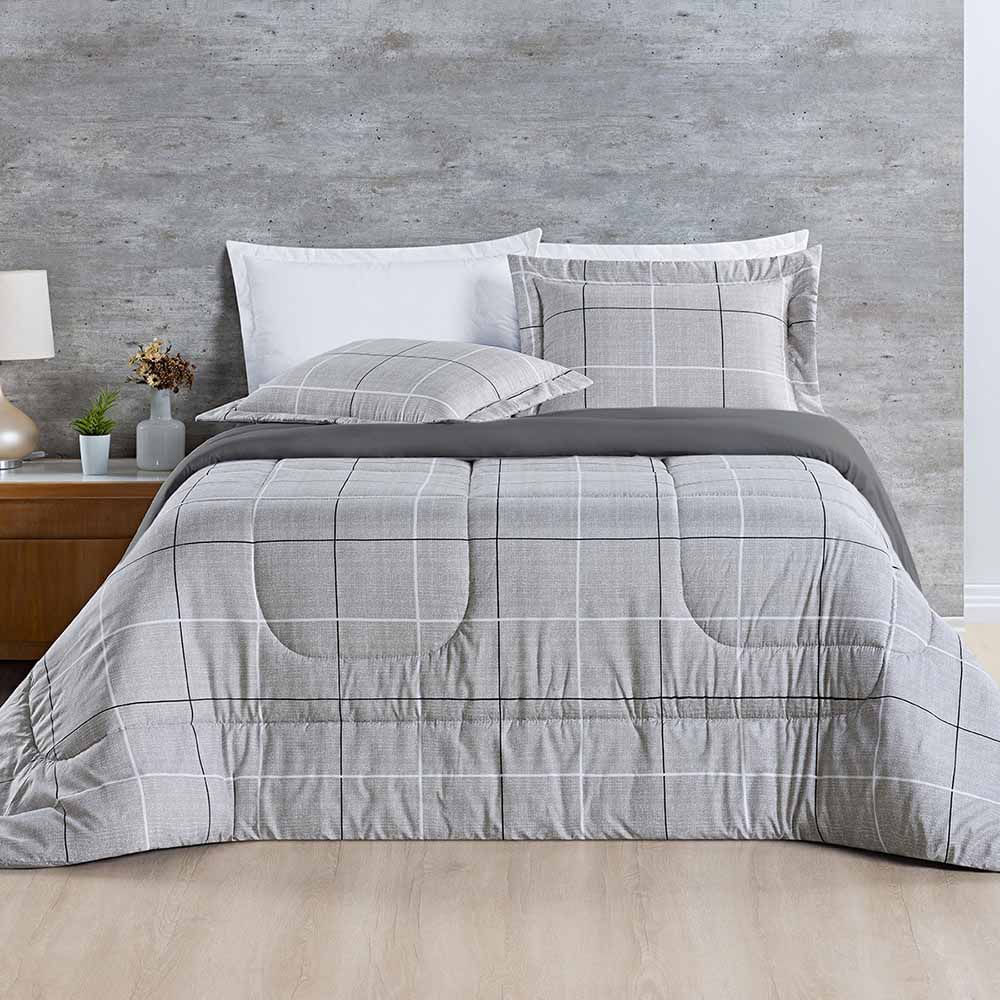 Kit Edredom Júlia Super King 3 Peças Dupla Face Micropercal 200 Fios - Dallas - 100% Poliéster
