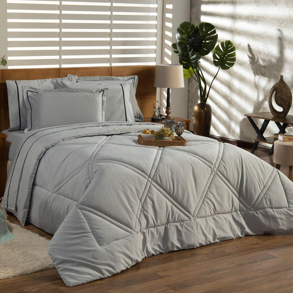 Kit Edredom Liso King Milano Dupla Face Com Fronhas 03 Peças - Percal Algodão 200 Fios Cor Cinza