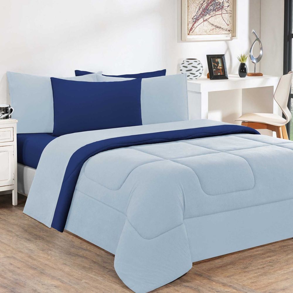 Kit Edredom Malha 100% Algodão Gran Moratta 2 Peças Solteiro - Azul Bebê/Azul Royal