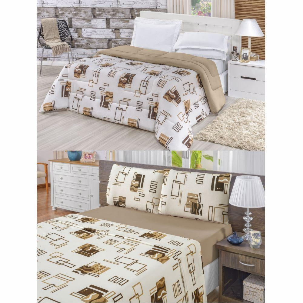 Kit Edredom Malha 100% Algodão King Dupla Face 7 Peças + Lençol - Avelã - 100% Algodão