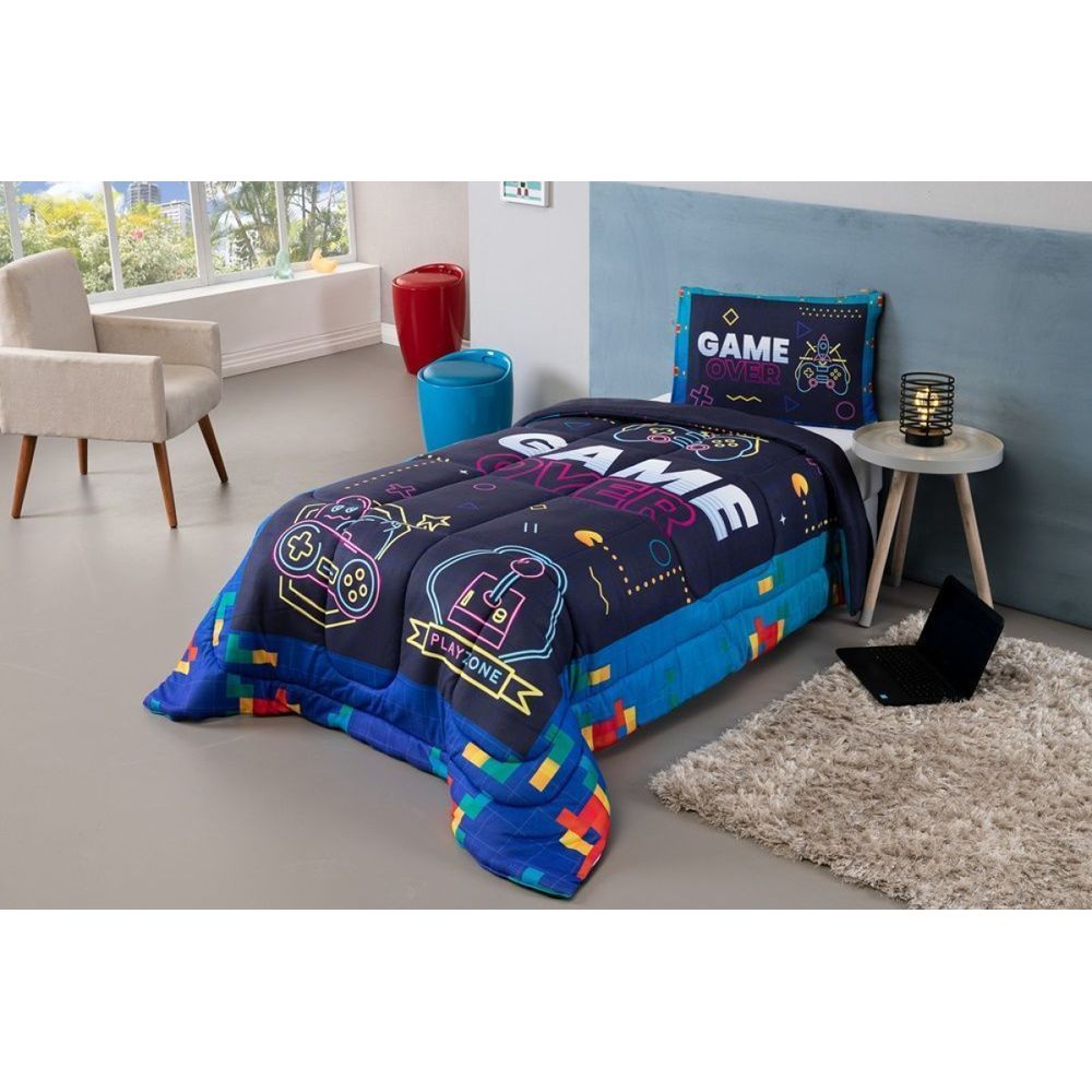 Kit Edredom Plush Fofinho Infantil Dupla Face Dream 2 Peças Solteiro - Video Game