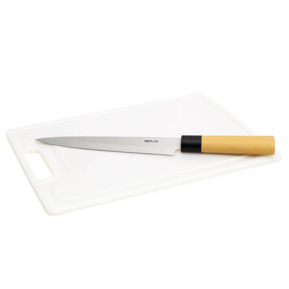 Kit Faca para Sushi 8" Brinox e Tábua Multicorte Branca 44cm Cinquetti Poliestireno