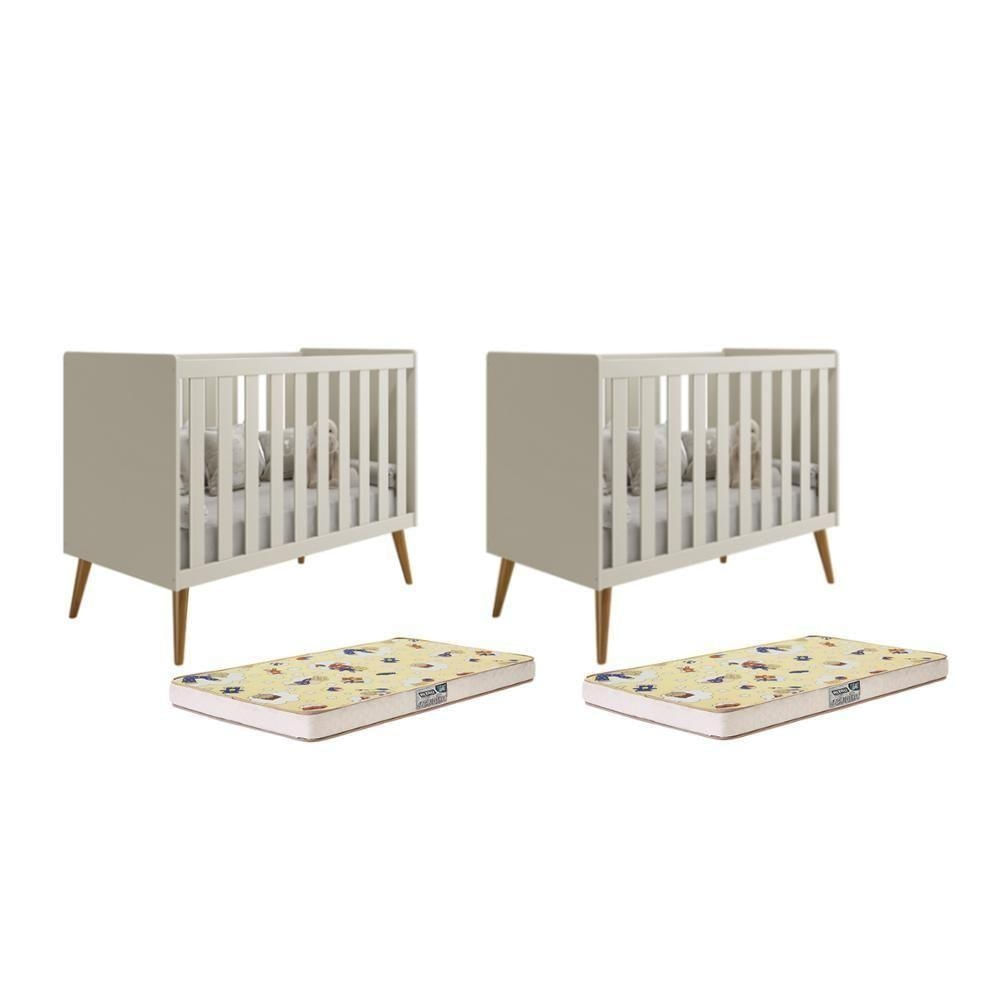 Kit Gêmeos Berço Americano Isis Areia Com Colchões Supreme - Reller Móveis Areia