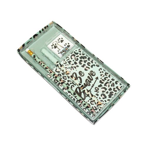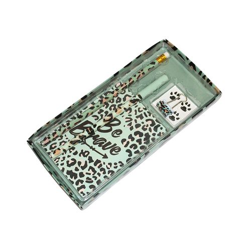 Kit Gift Le Office Animal Print 1 Lápis Grafite, 1 Caneta, 1 Caderneta, 1 Binder 19mm e Adesivos
