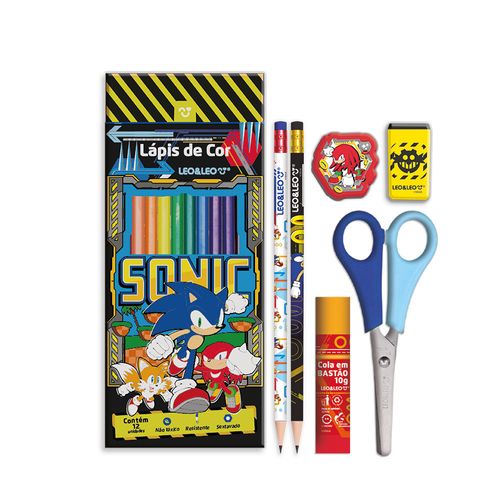 Kit Lapis de Cor Sonic Com 18 Cores, 2 Lapis HB, 1 Apontador, 1 Borracha, 1 Tesoura e Cola Leonora
